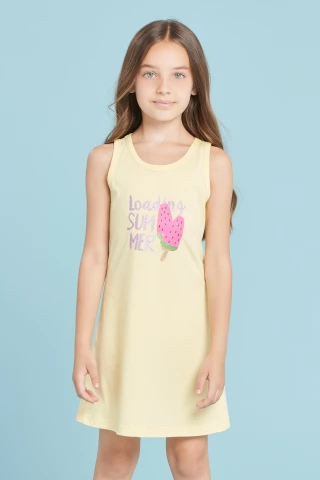 Abitino bambina cotone loading summer giallo spalla larga con stampa glitter