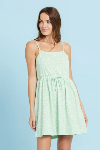 Abitino donna cotone leila con bretellina stampa con margherite e coulisse regolabile in vita
