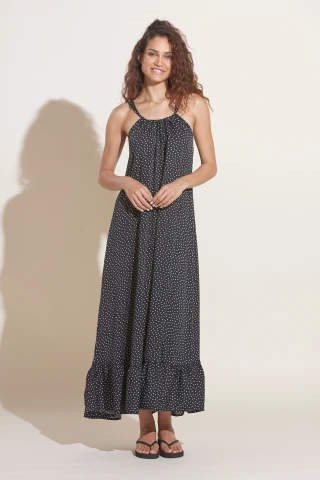 Abitino mare donna viscosa carema con stampa a pois,con scollo con coulisse regolabile a bretelline e dettaglio rouches