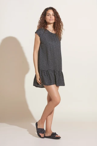 Abitino mare donna viscosa guadalupe con stampa a pois,manica spalla larga e rouches sulla gonna
