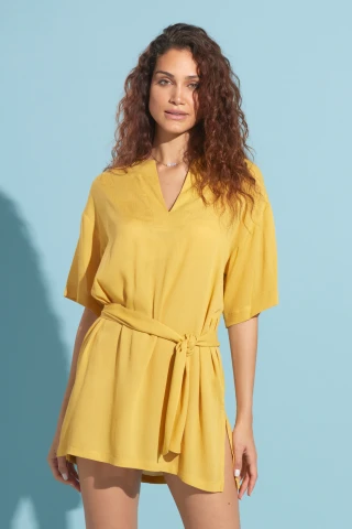 Abitino mare donna viscosa luly manica corta,tinta unita con scollo a V e fusciacca in vita