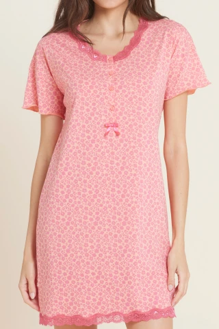 Camicia da notte donna cotone camelia manica corta scollo serafino con stampa a fiori e dettagli in pizzo