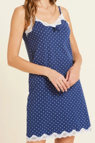 Camicia da notte donna cotone sissi a bretellina con stampa a pois e dettagli in pizzo