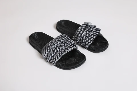 Ciabatta donna gomma rouscè suola superiore con texture intrecciata e banda in tessuto a righe con rouches