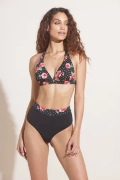 Costume mare donna triangolo red rosellina con stampa a fiori e pois,coppe estraibili e slip brasiliano a vita alta