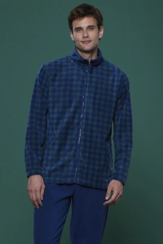 Giacca uomo in micropile verde con stampa pied de poule tasche laterali e zip