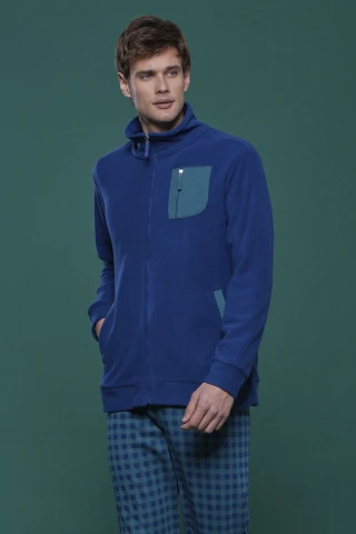 Giacca uomo micropile ontario blu con zip taschino verde e tasche laterali