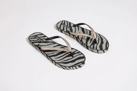Infradito donna fomma zebri suola superiore con fantasia zebrata e cinturino glitter.Altezza suola 2 cm.