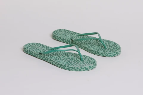 Infradito donna gomma ghepi suola superiore con stampa maculata e cinturini di colore verde. Altezza suola 2 cm.
