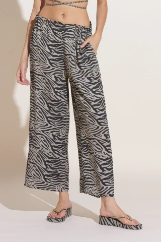 Pantalone mare donna viscosa ivera lungo senza polsino ,stampa zebrata e dettaglio rouches in vita