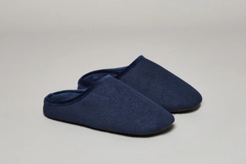 Pantofola uomo semplice in acrilico blu con dettagli in velluto