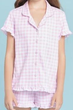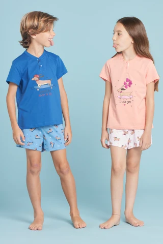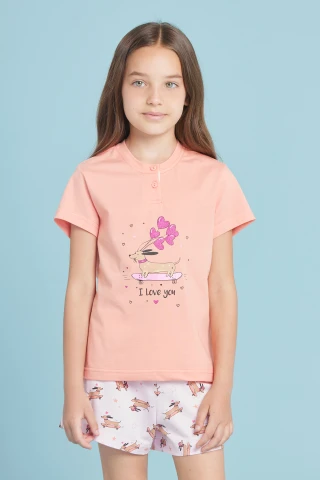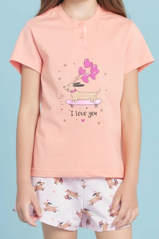 Pigiama bambina cotone bassy top manica corta con stampa bassotto glitter e pantalone corto con fantasia bassotto allvoer