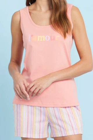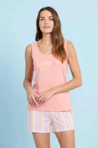 Pigiama donna cotone amo top spalla larga con stampa e pantalone corto a righe