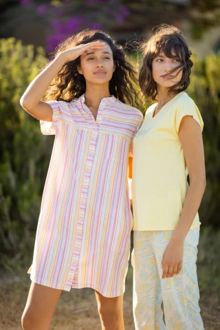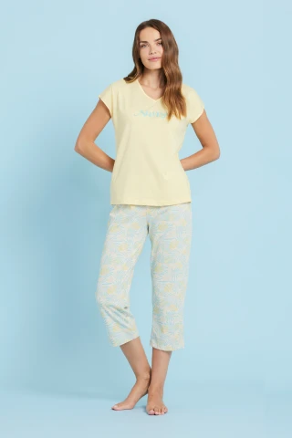 Pigiama donna cotone sunlight top manica corta con stampa e pantalone pescatore con stampa botanic