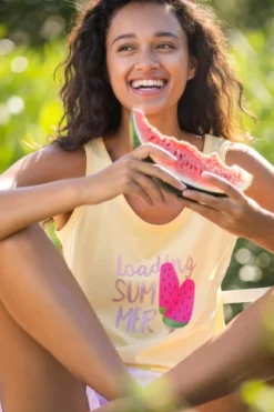Pigiama donna cotone watermelon top spalla larga con pantalone corto con stampa vichy