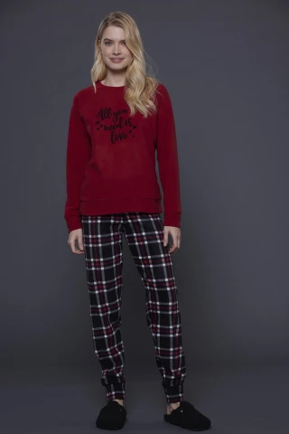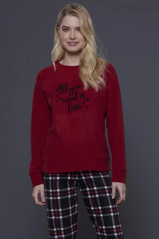 Pigiama donna bigghi top rosso con stampa e pantalone con stampa scozzese con polsino