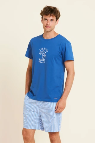 Pigiama uomo cotone island top manica corta con stampa e pantalone corto a righe