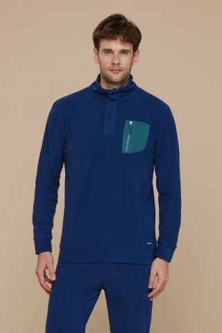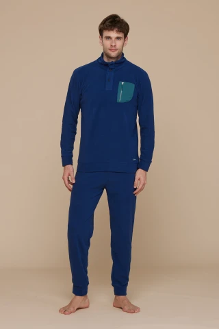 Pigiama uomo micropile ontario pantaloni con polsino blu e top blu con taschino verde