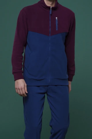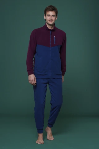 Pigiama uomo micropile point pantalone con polsino blu e top bordeaux e blu con zip