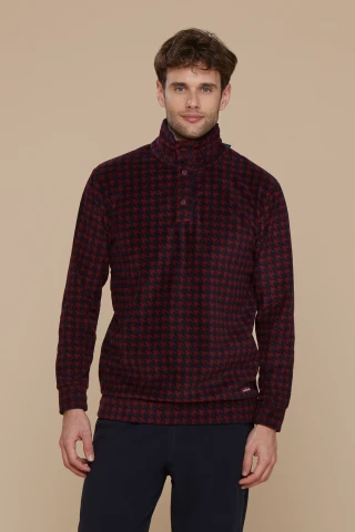 Pigiama uomo micropile pull pantaloni blu con polsino e top rosso con stampa pied de poule