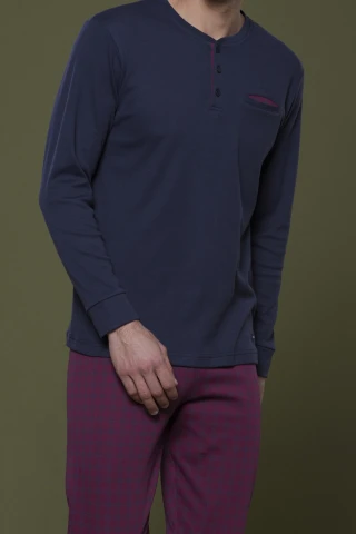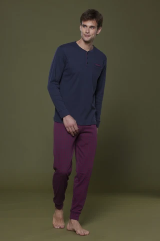 Pigiama uomo caldo cotone felpato unlimited pantaloni stampati e top blu con taschino