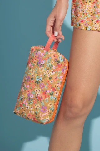 Pochette mare donna fiorelly con stampa a fiori,chiusura zip e manico laterlale