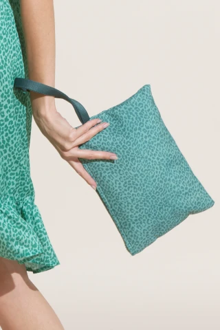 Pochette mare donna macu con stampa maculata verde,chiusura zip e cinturino da polso