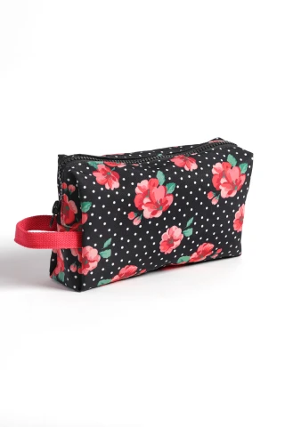 Pochette mare donna rosellina con stampa con rose e pois,chiusura zip e manico laterale