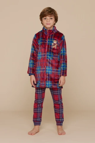 Vestaglia unisex coral triorso con stampa scozzese orso applicato chiusura zip e tasche laterali
