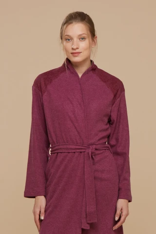 Vestaglia donna caldo cotone carmen con particolare in pizzo sulle spalle e con cintura da annodare dello stesso tessuto