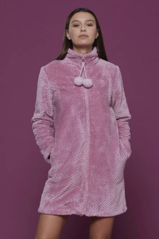 Vestaglia donna coral bubble rosa con tasche laterali chiusura zip