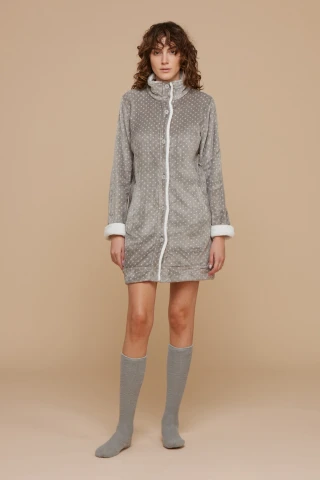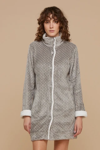 Vestaglia donna abbottonata coral grigia con stampa pois e tasche laterali