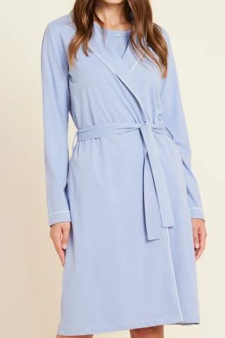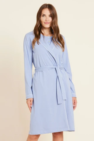 Vestaglia donna cotone conny glicine con cintura in vita dello stesso tessuto e collo rever