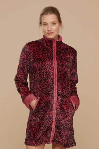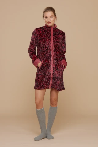 Vestaglia donna coral macchia con stampa a macchie nere e con tasche e zip